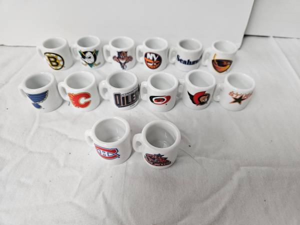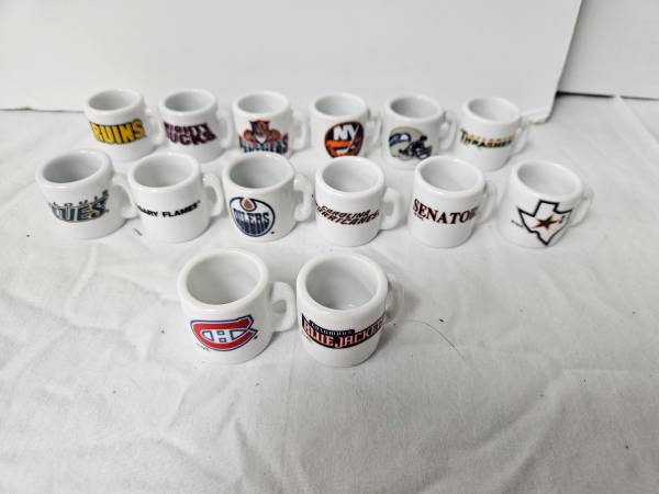 14 NHL Hockey Mini Coffee Mugs. Excellent condition.