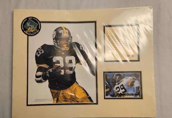 "Pounding Away" Barry Foster Pittsburgh Steelers Picture/Card. Approx. 14"X11" overall. A small crease in matting. Good condition.