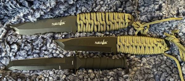 Two of the knives are identical Survivor Brand and the other is AI Brand. Both Brands known in the industry and by tactical enthusiasts for their high-quality products.