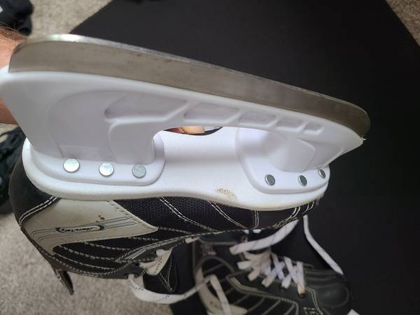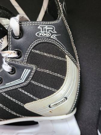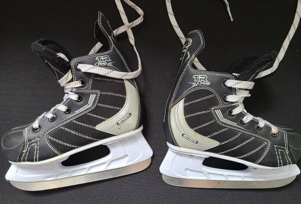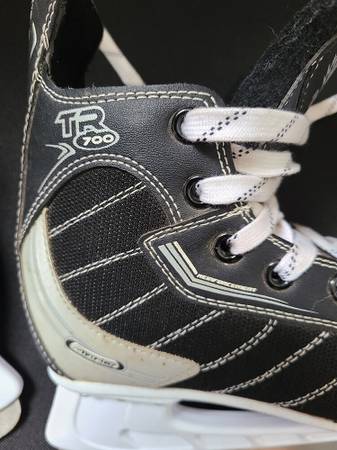 A nice pre-owned pair of TOUR TR700 Ice Hockey Skates. Youth Size 13 Kids. Overall, skates are in great shape. Some minor wear. See pics for condition. They are ready to strap on and skate!