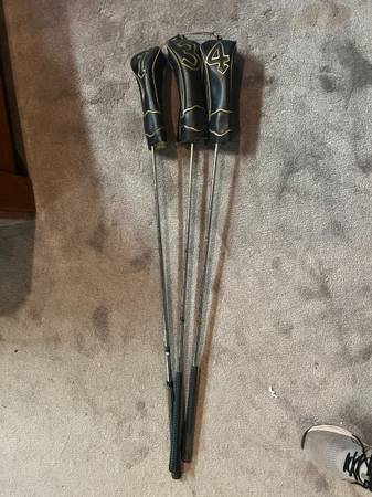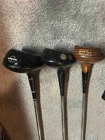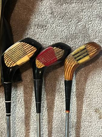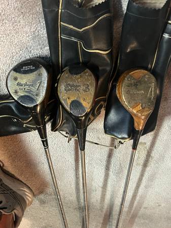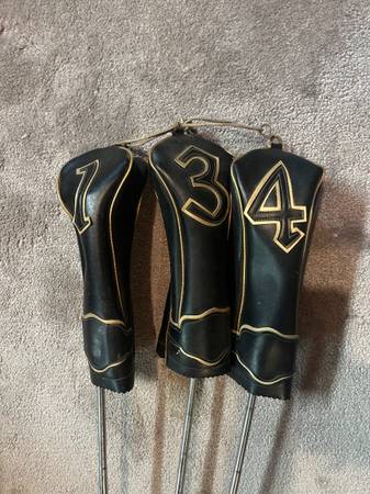 Vintage Collectable Golf Club Woods. Driver, 3, and 4 Woods with Original Leather Head Covers.