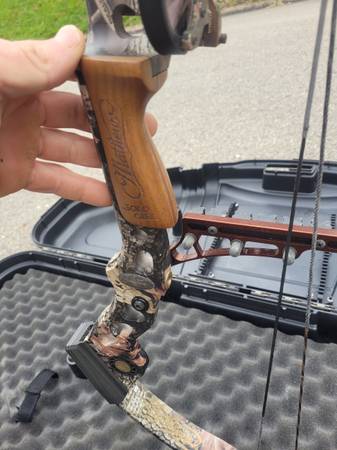 Mathews ovation solo cam. Bow is in excellent condition. Currently set to 28 inch draw 70 lbs. Can be adjusted if needed. Bow has been very reliable and is extremely accurate. Comes with case. Can't find the sight but if I do ill throw that in too. Strings were replaced in April of this year. Has 80% letoff. Great compound bow for the price 300 obo haven't been able to archery or hunting like I used to only reason for selling.
