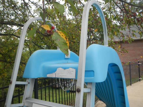 This is a pool slide that is about 30 years old. It has some cracks as shown in the photos. I did repair one of them about 15 years ago with auto body repair. It was cemented into the pool deck. I cut it off close to the concrete deck. Asking $200 or best offer
