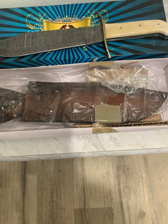 Damascus Bowie knives excellent condition one bone handle and one stag handle 100$ for both