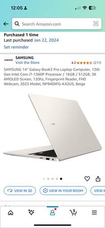 SAMSUNG 14” Galaxy Book3 Pro Laptop Computer, 13th Gen Intel Core i7-1360P Processor / 16GB / 512GB, 3K AMOLED Screen, 120hz, almost no use that’s why I want to sell it. Like new, Amazon sell $1149 plus tax $1230, asking $675. Here is the link from Amazon https://a.co/d/ehjqYfd