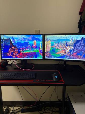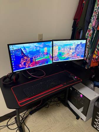 NZXT custom built gaming pc comes with mouse, xl mouse pad, keyboard, two monitors, gaming desk 800 it works great! Specs are in the pictures