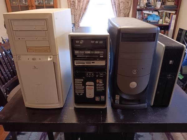 Big lot of 4 vintage computers with the following models. Dell Dimension 8400, starts up but no picture. HP Compaq dc5800 SFF, Intel Core 2 Duo E 8400 3.00 GHz, 3 GB RAM, starts up Gateway E-3400,...