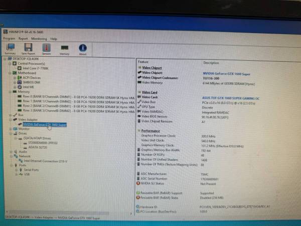 GPU: ASUS TUF Gaming GeForce GTX 1660 Super
