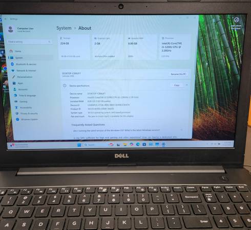 intel i5. 5200u cpu 2.20ghz turbo boost to 2.7ghz.