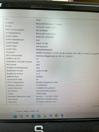 Aspire TC-895-UA91 desktop computer, Compaq monitor, keyboard & mouse. No shipping. Local meeting only.