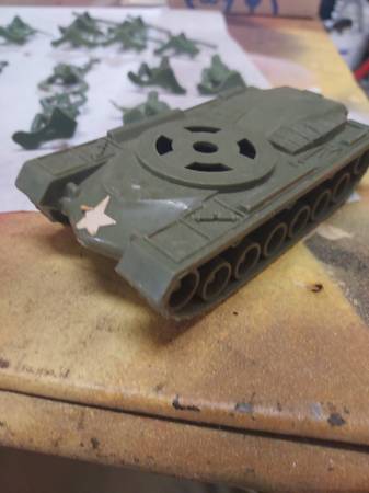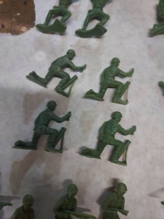 Vintage Plastic Army Soldiers, 29 of them plus part of a tank, $5 Cash only and no shipping