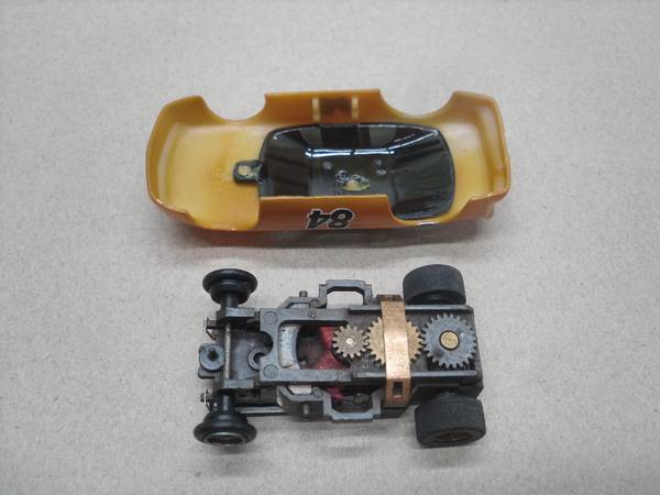 Brown, #84, Ford Thunderbird with original Aurora AFX chassis,