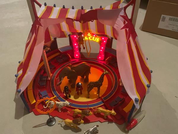 Playmobil circus tent, animals, people, and fencing. You get everything in pictures. Smoke free home. Pick up Butler Commons Target parking lot. Text only.