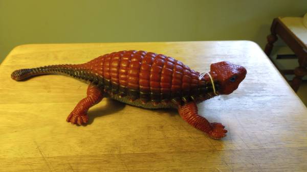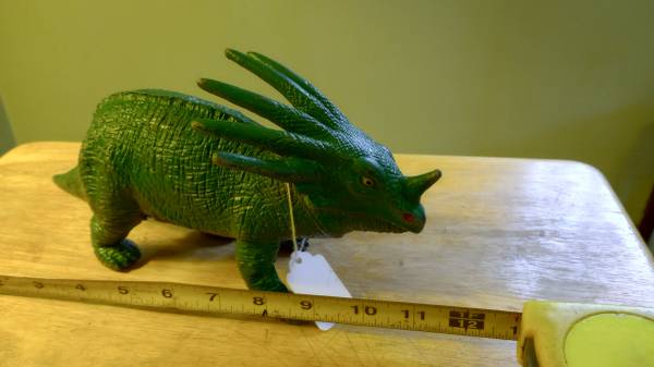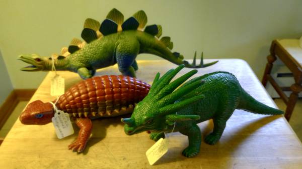 3- Large Vintage Dormei UKRD, Dinos 1986, hard rubber, heavy, Stegosaurus, Ankylosaurus, Styracosaurus, minor wear, like new