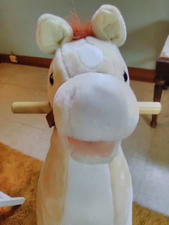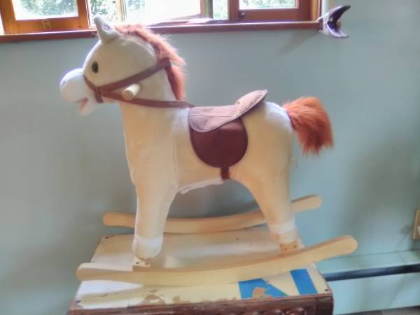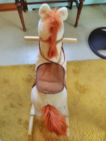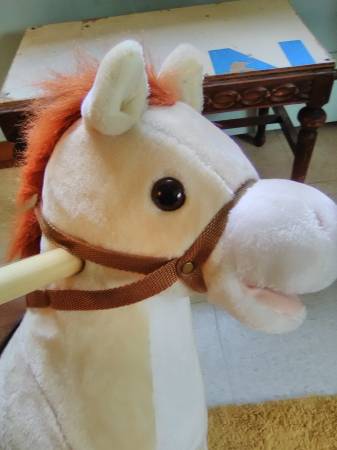 Silver Star Brands animated rocking horse, tail wags, mouth moves, whinny, trotting sounds, like new condition. Batteries in it. This is the Personalized rocking horse, it came with a neckerchief...