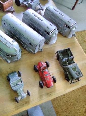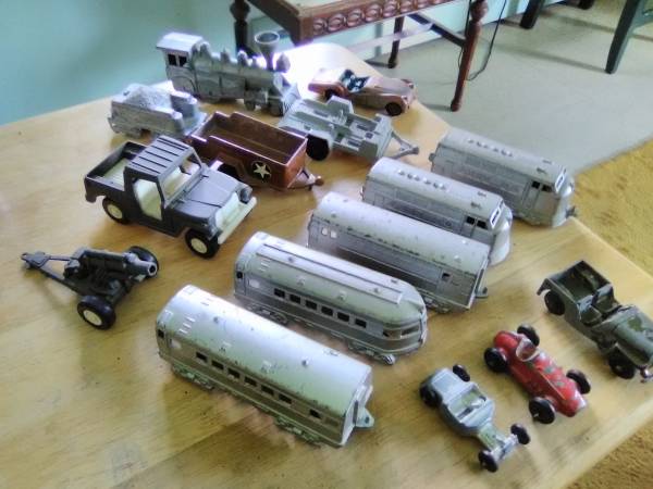 Vintage Die Cast, planes, trains, cars, trucks, military etc, good used condition. 37 pieces. Shipping