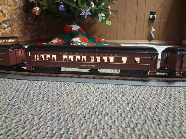 Williams Penna Railroad train set. Comes with: ABA and 5 cars; transformer; 18 track that makes a 72" oval layout. Like new. See photos.