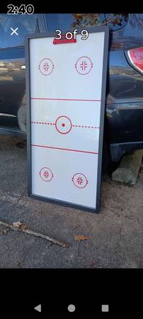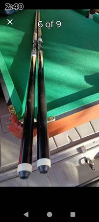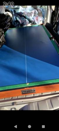 Used but good condition ..rack brand, 55" length by 30" wide ..pool table, folding legs, and a reversible insert for ping ball and non electric hockey. Comes with all the fixings! Balls, paddles,...