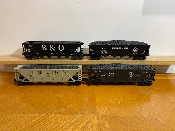 (shipping available) 4 LIONEL / MTH B & O QUAD HOPPERS WITH COAL LOADS - $80 (ELLWOOD CITY)