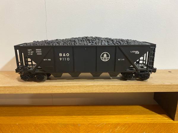 Lionel 9110 B&O quad hopper with coal load and original box.