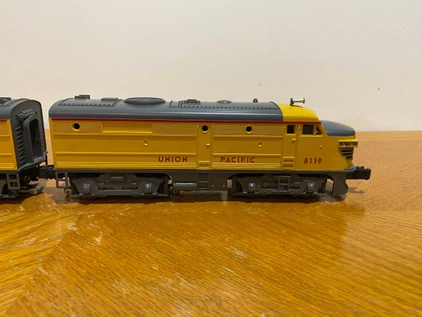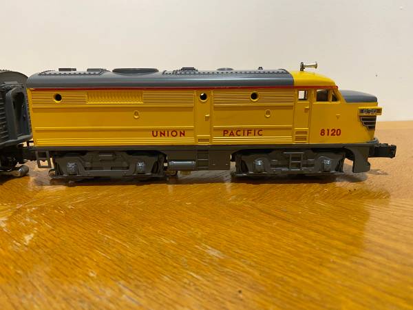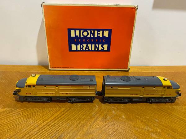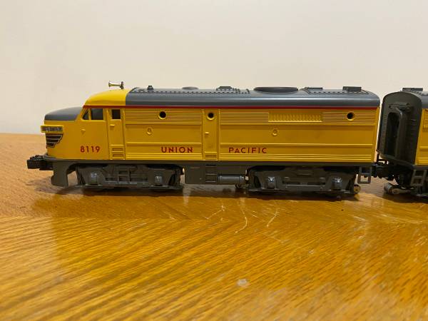 For sale is a Lionel Union Pacific passenger train set. The set contains Alco locomotive set 6-18119 with 8119 A power unit and 8120 A dummy unit with horn. 4pc aluminum Passenger car set 6-39146 with 39147 Baggage car, 39148 Coach, 39149 Coach and 39150 Observation. All in excellent condition with original boxes. Any questions please email. (If it's still listed it's still available)