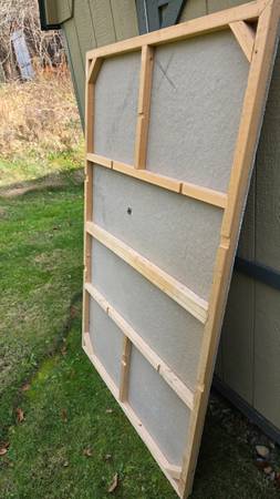 Train platform. Made with homesote panel and 2x2/2x3 pine. Size is 4' by approx 6'. Has cutouts in frame for running cords to transformer or wall plug. Has hole for tree power cord to pass through. Light but solidly built. See pics. I used under Christmas tree for O-scale and HO- scale trains. Stored inside always. $20.00 obo