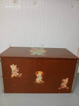 Hand crafted vintage wooden toy chest, very stable. If interested, send your phone number and I will contact you.