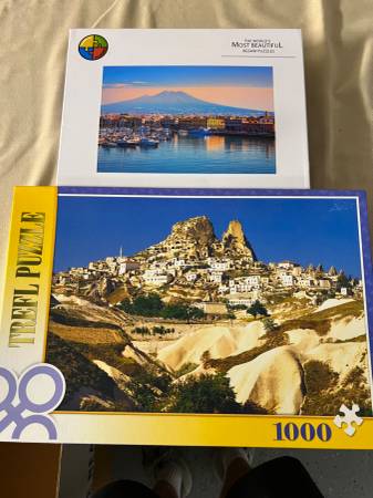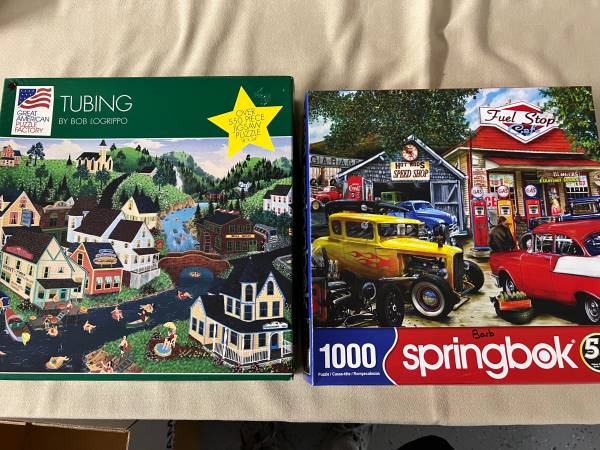 House on beach scene by David Maclean (top left corner in third pic) is missing one piece. Will include this for free if you buy all of them. All other puzzles are complete without any missing pieces.