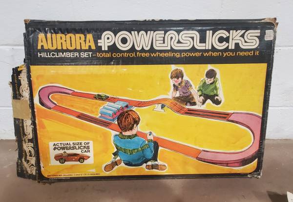 Vintage Toy Race Track. Operates on 4 D batteries (or 6 for increased speed). Believed to have all pieces except for 2 of the purple trestles (have 2, should be 4) and the orange piece that goes in the battery compartment. (Note: I do have the orange piece for the battery compartment in another Aurora Powerslicks set I also have listed for sale for $20 on Craigslist under Aurora Powerslicks Pretzel Bender Set). I would sell both sets for $30. Cash only