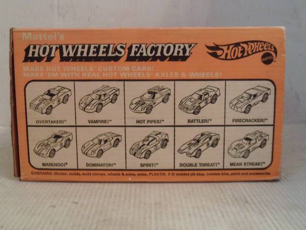 Vintage 1969 HotWheels Factory. Includes molding machine[ heating element still works ],raceing play base,6 molds,some plastix,wheels,etc. Asking $120.00 FIRM Cash Only. I am not a dealer. You pick up at my workplace in Dormont. Monday-Saturday,No Sundays. No texts. I only check my email once every day or two, in the late evening, so please be patient.