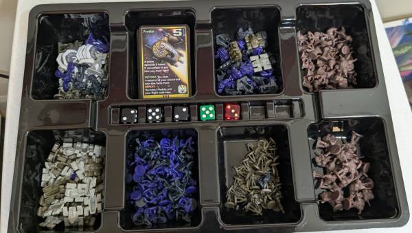 This game appears incomplete. Comes with what is shown in the photos. I have merged photos due to limits on Facebook Marketplace. Box has wear and tear. There are no instructions or game component information. Comes with 2 two-sided playing boards and all pieces shown in images. There appears to be some dice missing and maybe one is mismatched. Selling as is. $34 firm.
