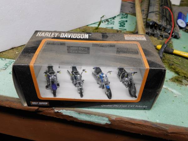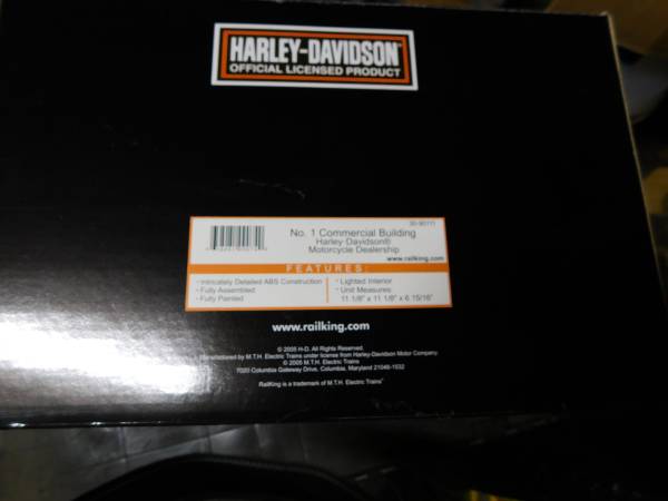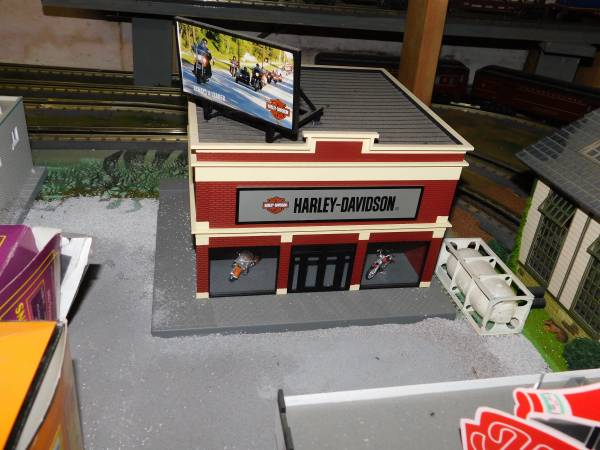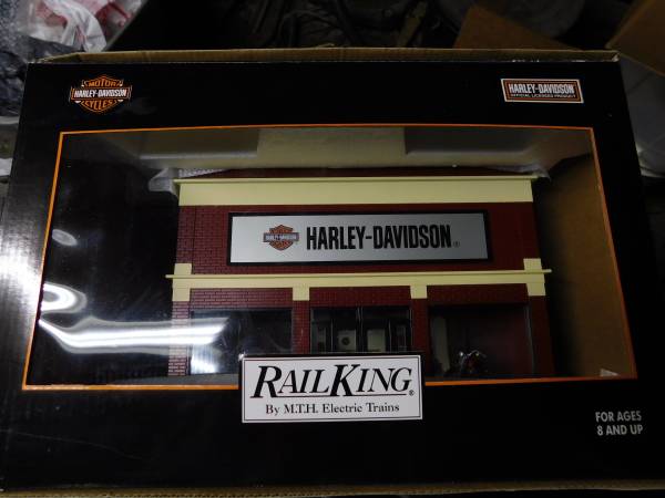 MTH Harley O Gauge building. It does have some gravel from my layout stuck to the bottom. it is pre lit. I did add 4 mth motorcycles to the inside, $55 add on.
