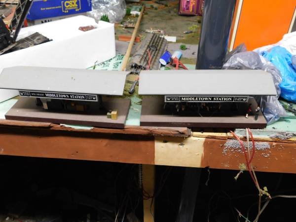 MTH O scale Operating Middletown Station's. No boxes and dusty. One controller. One is a passenger station, the other is a freight station.