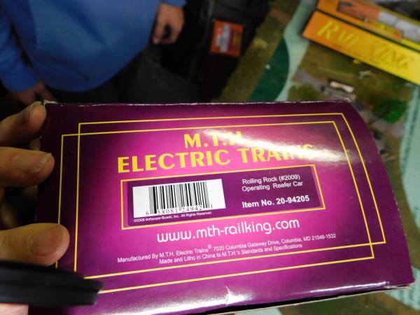 MTH O Scale rolling rock operating reefer. This car is awesome! It unloads cases of beer and smokes. Dusty.