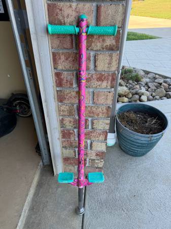 Two kids pogo sticks one brand new one barely used. One is for up to 100 pounds and is $20. The other one is up to 200 pounds and $30.