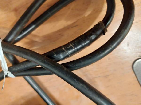 Cord has some electrical tape (shown in pictures) covering a cut through the outer rubber insulation.