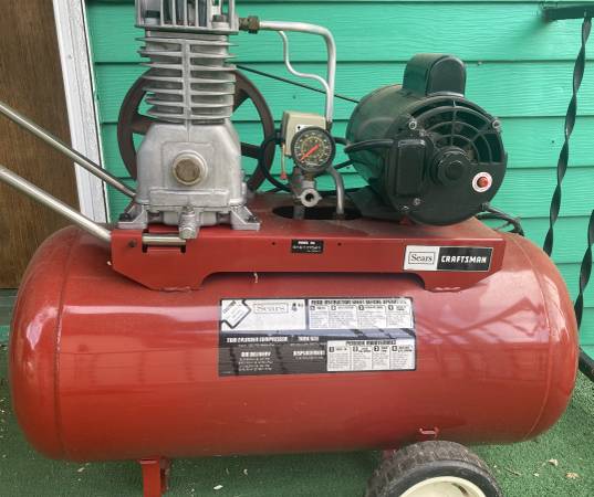 Super clean older Sears 220v air compressor. 4hp, 20 gallon. Used minimally and always oiled. Great shape minus a little dust. First $160.
