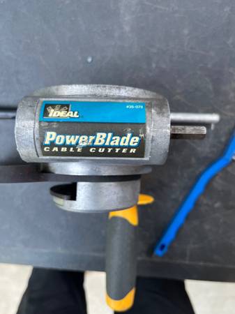 Ideal brand cable cutter (35-078) for cutting copper cable up to 750mcm. A little tarnished, but in perfect working condition. Cutting blade are sharp, with no dings or gouges. Drill not included. Was $1100 on Amazon. For local pickup only. Email or TEXT 412-3O2-twenty-six twenty.