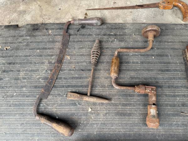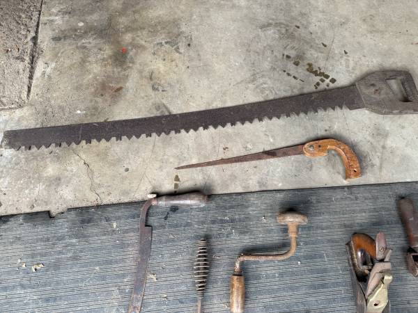 For sale is a bundle of Vintage Tools...Wood Plane, Draw Knife, Tree Saw, Racket Bit and Two Scythe Snath Sickles. $100 for everything Cash Payoff, No Trades, No Delivery, As is Sale