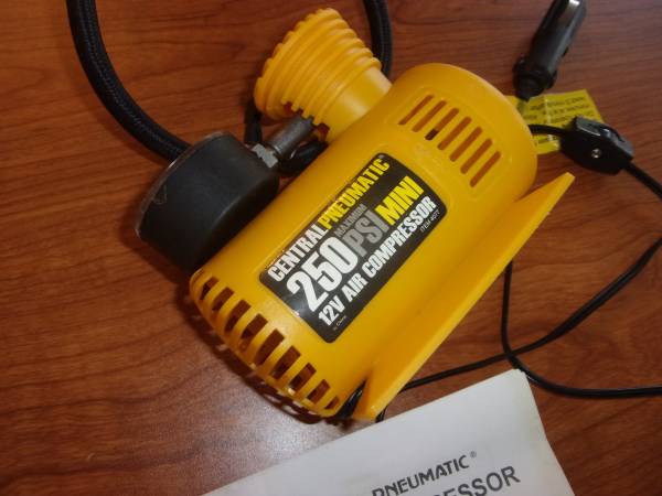 MINI AIR COMPRESSOR, 250 PSI MODEL 04077, CENTRAL PNEUMATIC 12 VOLT ORGINAL ASSEMBLY AND OPERATING INSTRUCTIONS INCLUDED