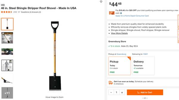 Two MBI roof shingle strippers. Bought at Home Depot and used to remove 25 sq. of shingles. $25 each. Cash only, if ad is up they are available.
