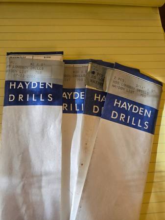 137 new Hayden longboy drills.... a wide variety of lengths. I can provide a list of sizes and quantities of each.Over $600 retail.... asking $150 for all