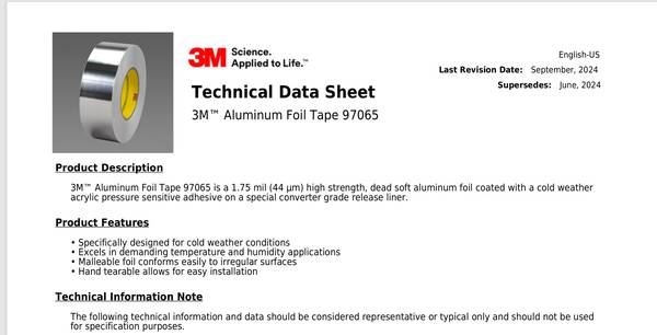 Selling a case of 6 unused rolls of 3M 97065 Aluminum Foil tape