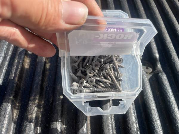 Full box of 1-5/8" screws with driver bit. Costs $12.00 at Home Depot