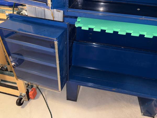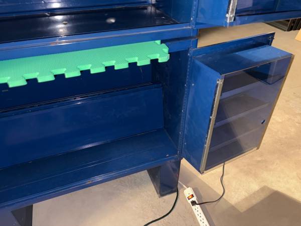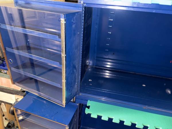 NAPA Echlin cabinet in good condition. Three separate sections that bolt together (currently not adjoined). 76” tall (with legs on bottom cabinet) x 33” wide x 17” deep. Great vintage automotive...