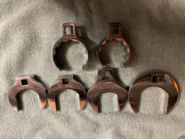6 included 3/8 Drive: 2in 1 5/8 1 9/16 1/2 Drive: 1 3/8 1 5/8 1 13/16 All are Snapon All like new