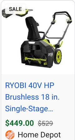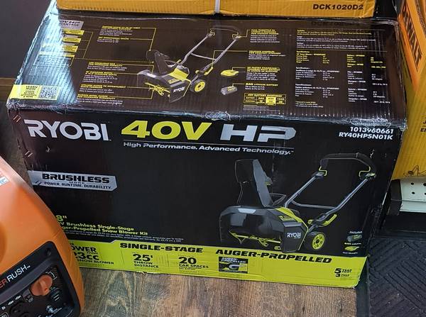 RYOBI 18" 40 volt Auger Propelled SNOW BLOWER w/ Battery & Charger Brand new in the box in perfect condition. If interested call or text 7 two4-746-9190 no emails.