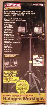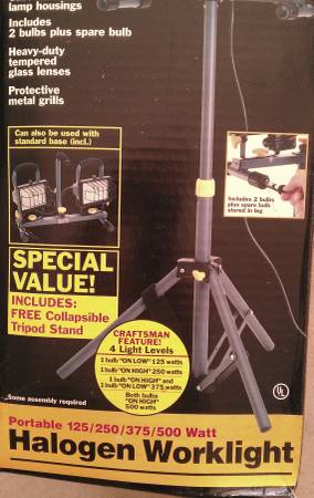 RAFTSMAN CONSTRUCTION WORK LIGHT WITH EXTRA BULBS SOLID STEEL CONSTRUCTION! Can extend to 43 inches high. I no longer have the box. Includes ELEVEN spare bulbs plus on spare in the light handle.