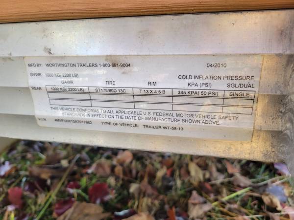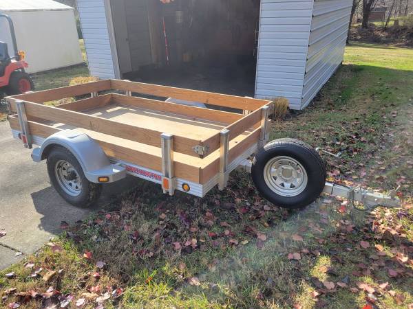 5x8 aluminum trailer tilt bed 340 lb empty 2,200 lb GVW 13-in wheels always garage kept excellent trailer for quads or tractor only used once a year for mulch