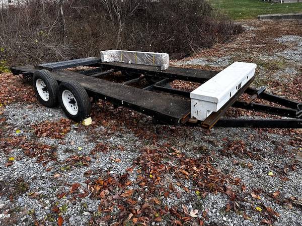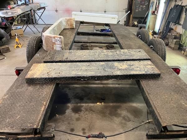 15 Ft long 77” wide New Fenders Newer tires 205-75-15 4 wheel brakes 62” tool box 2” 5/16 tow hitch Ramps included 5 new cross members 7000 GVW Welding repairs needed Certificate of salvage Please...